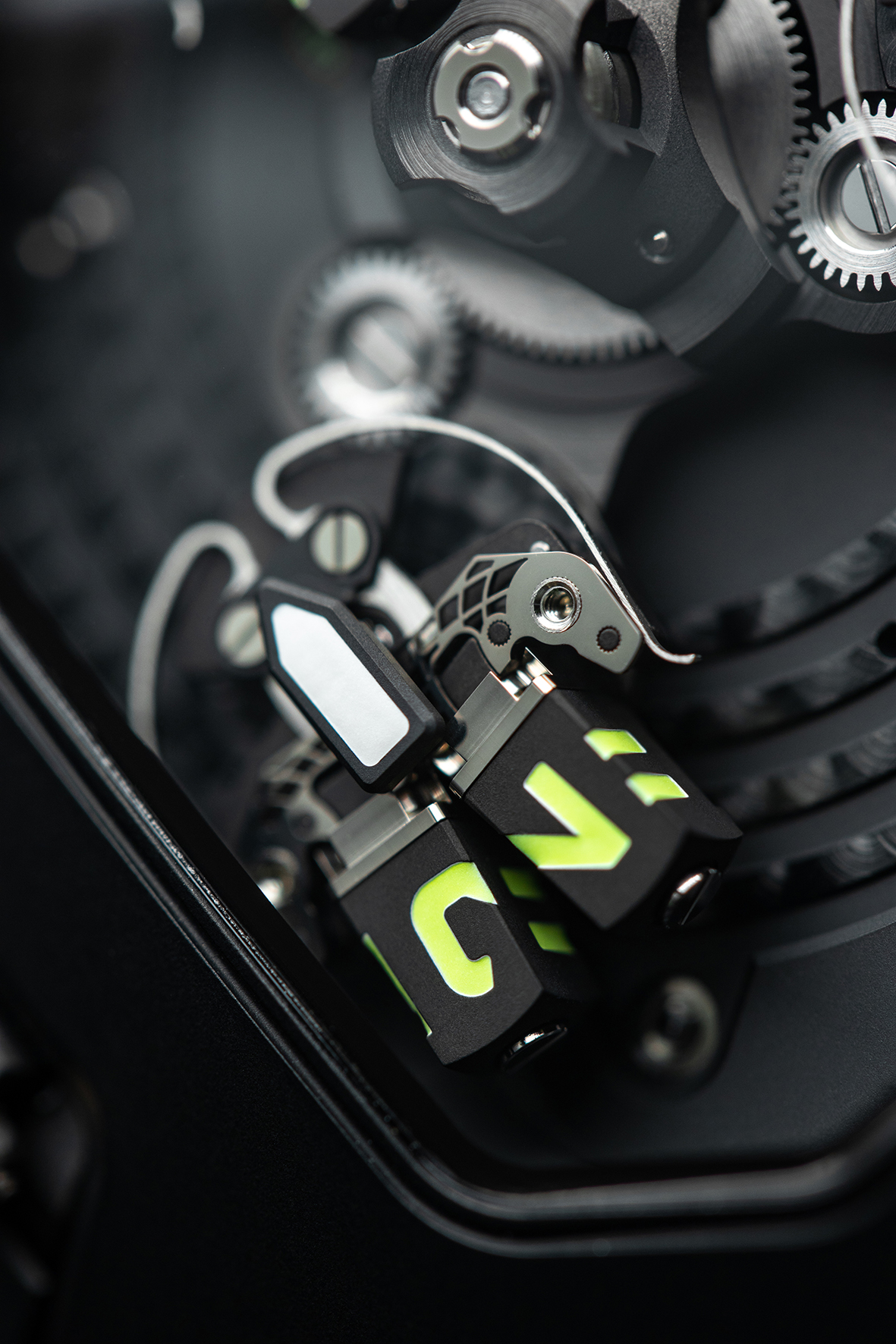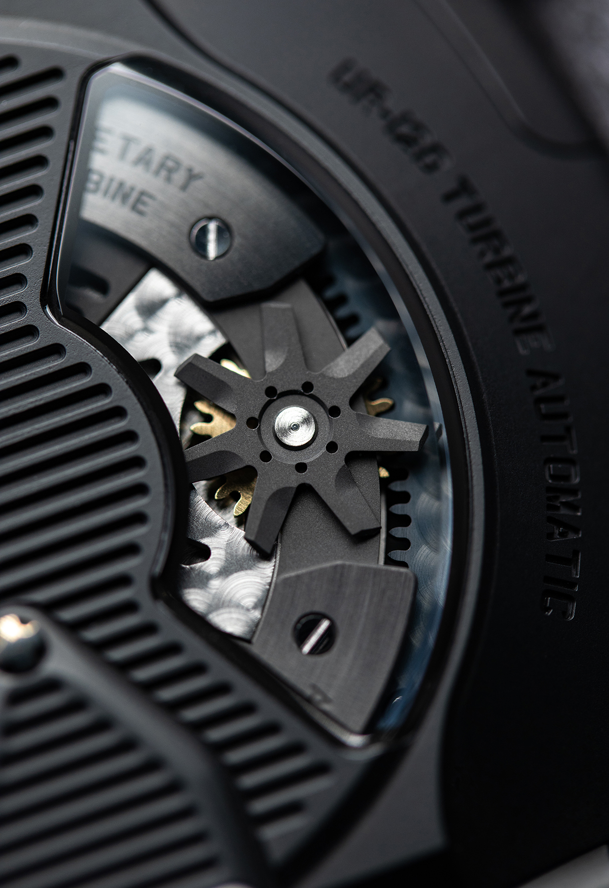 Inside the UR-20.01 caliber, the central carousel is fitted with three planetary gears, each one bearing a satellite.